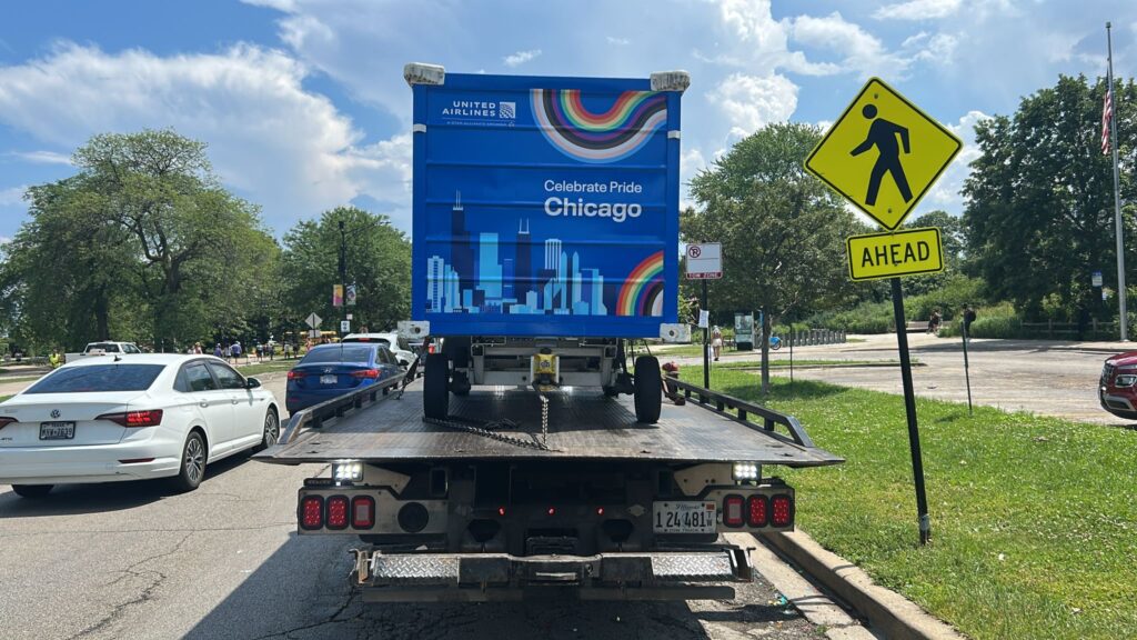 Towing Chicago had the unique opportunity to tow the United Airlines float during the Chicago Pride Parade. United Airlines created a large and detailed float that required a trustworthy and reliable towing partner to transport it safely to, through, and from the parade route – which is where Towing Chicago stepped in.